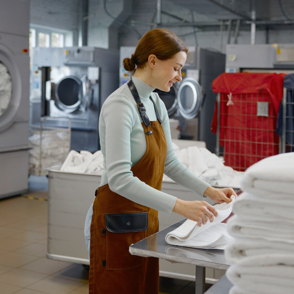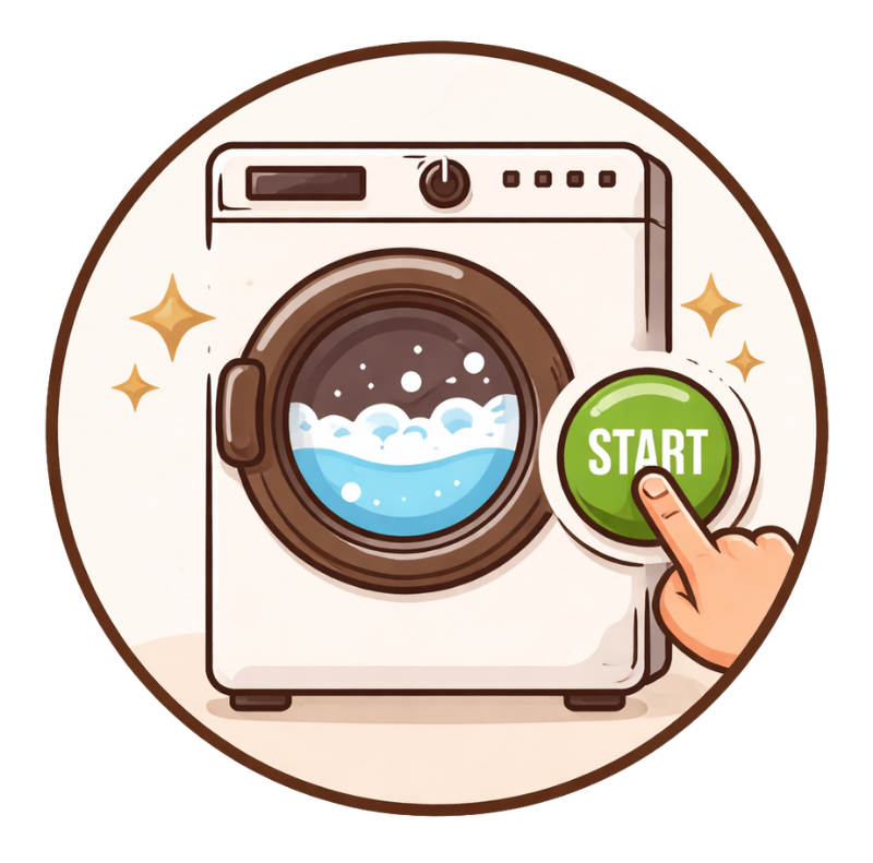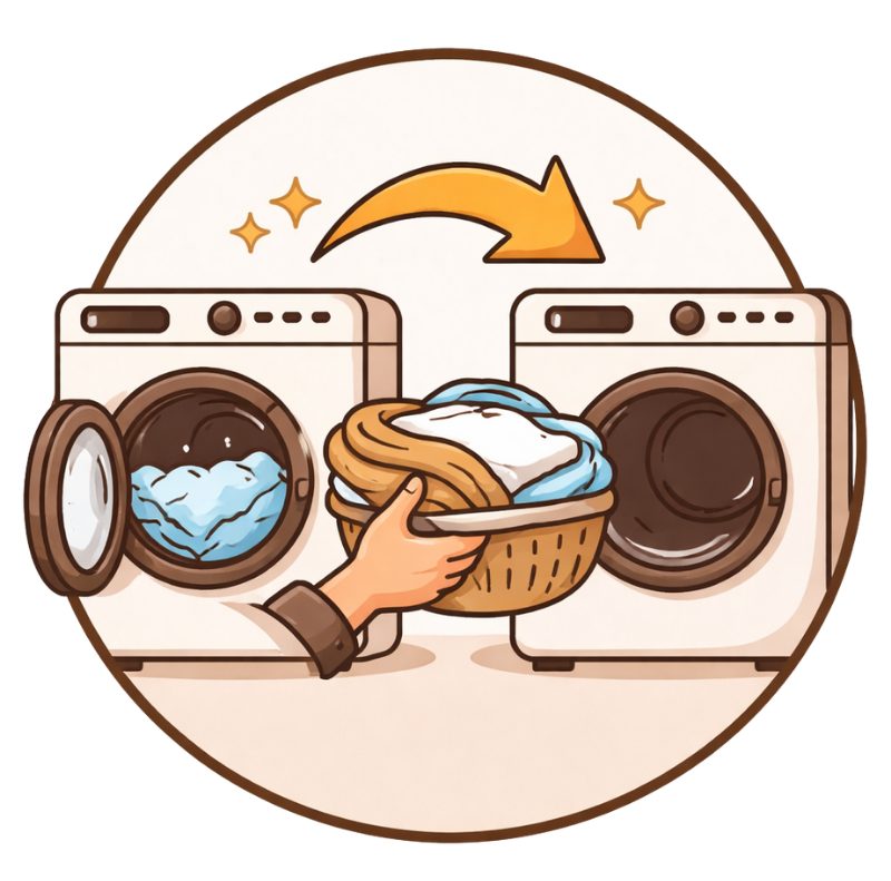 Unlike conventional household machines in dormitories or apartments, we use professional industrial machines with stronger cleaning power and significantly faster washing cycles.